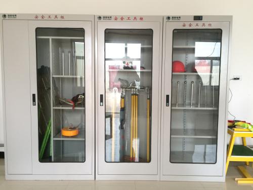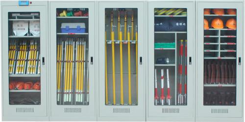 電力安全工具柜是裝載給各大電力工作人員使用的防護工器具的專業工具柜。絕緣桿,驗電器,接地線,絕緣手套,絕緣靴,安全帶,防毒面具,絕緣繩,絕緣擋板,屏蔽服等。